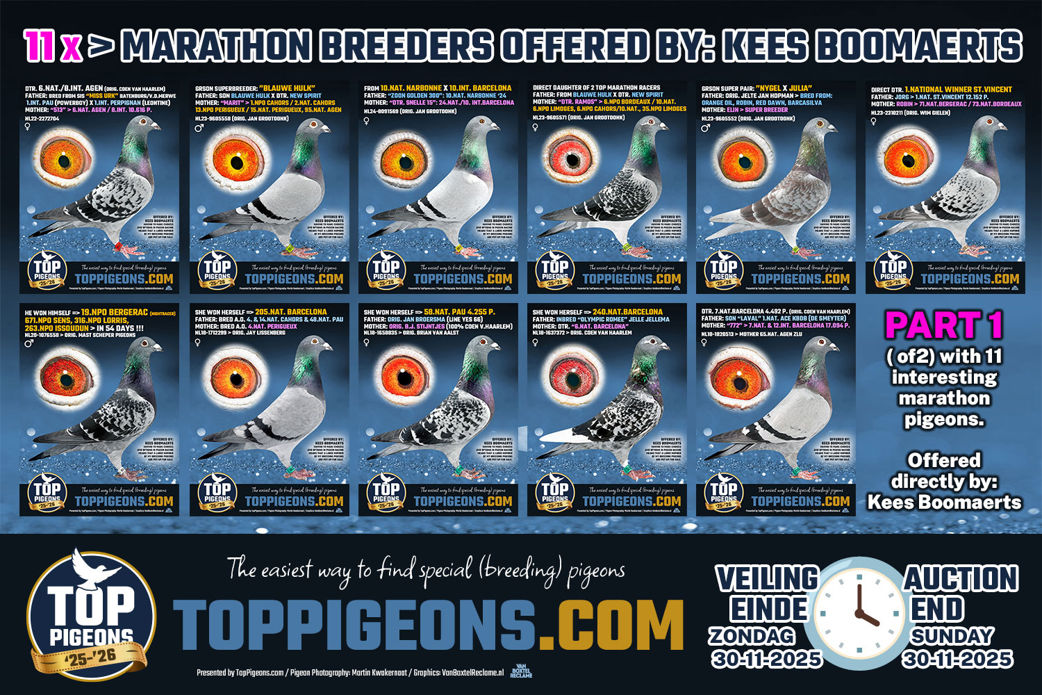 9x Rechtstreekse top duiven van NICO JAN KOENDERS