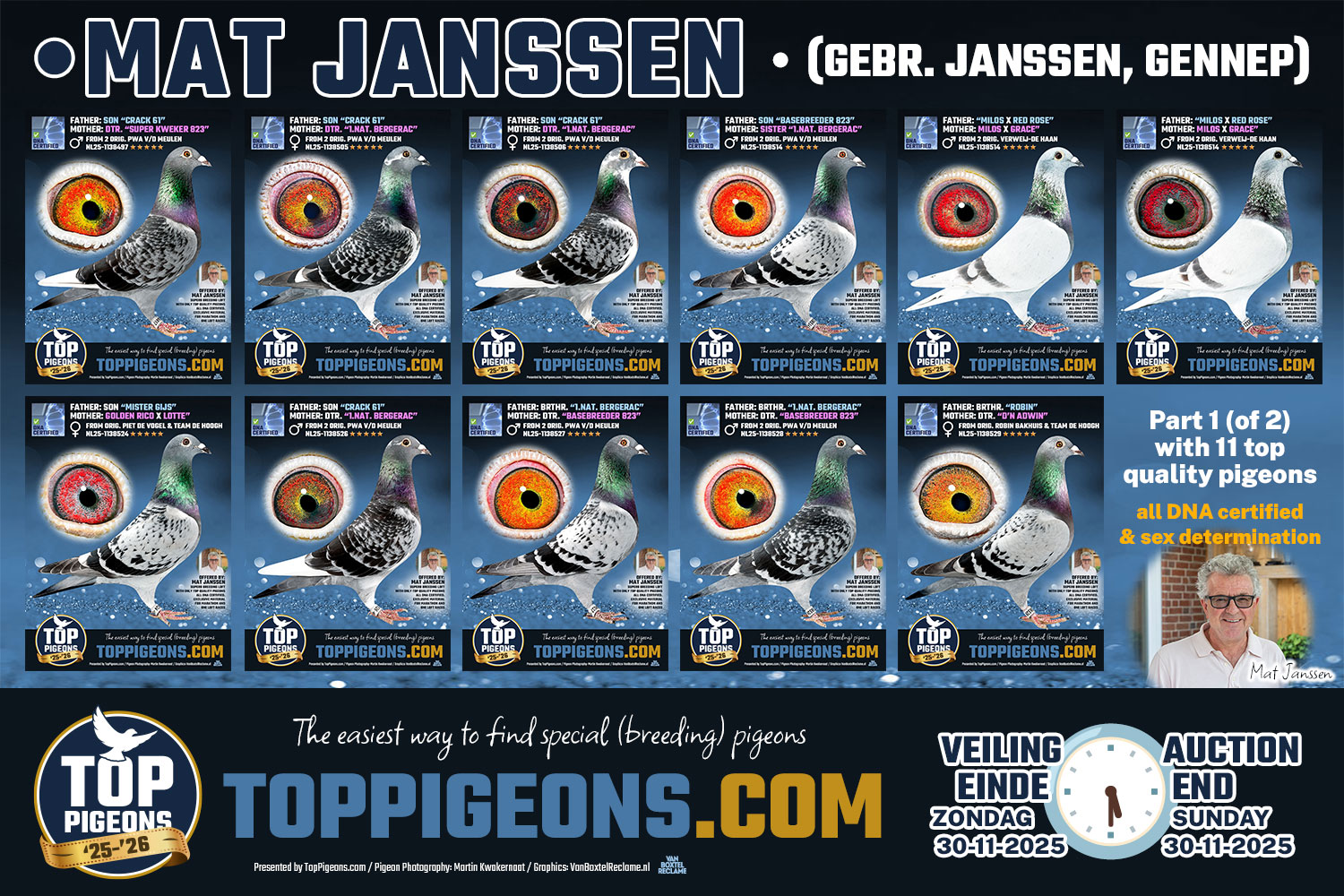 11x duiven van MAT JANSSEN voorzien van DNA Certificaat