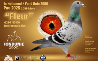 Jan Grootoonk wint met "FLEUR" de 1e Nationaal Pau tegen 3.281 duiven De NL22-8100806 gaat vanaf nu door het leven met de naam Fleur. En die naam is niet zomaar gekozen maar ze is vernoemd naar de dochter van vriend Henderikus Ruiter en zijn partner Corina Prins. De vader