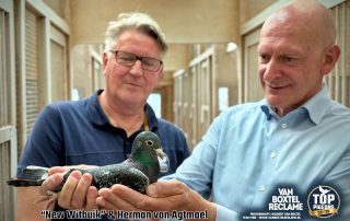 Piet de Vogel en "DE BLES" Op de foto ziet u Piet en zijn top duif "De Bles", een Barcelona kanjer welke we zeker terug gaan zien bij de Ace Pigeons zowel nationaal als internationaal over 3 jaar. En dat is dus weer een mooie verrijking